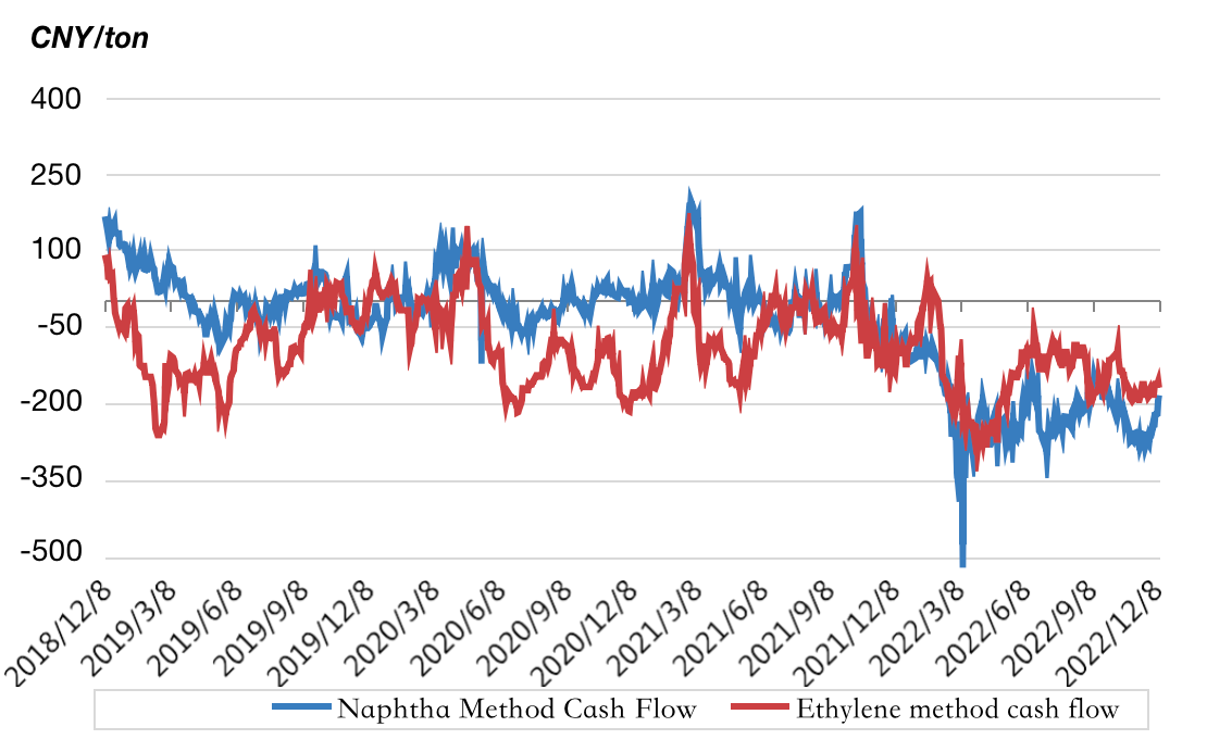 今週、ナフサベースのエチレングリコールのキャッシュフローは引き続き損失を出した。木曜日の時点で、統合されたエチレングリコールインスタントキャッシュは米ドルでした 184.23 / トンで、週平均キャッシュフローは 212.13 米ドルで、先週から大幅に増加しました。非統合キャッシュフローも持ち直している。木曜日の時点で、 外部市場での即時のキャッシュフローは約 - 168.45 米ドル/トン、週平均キャッシュフローは - 163.21 元/トン。