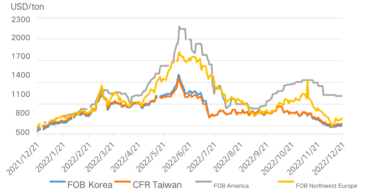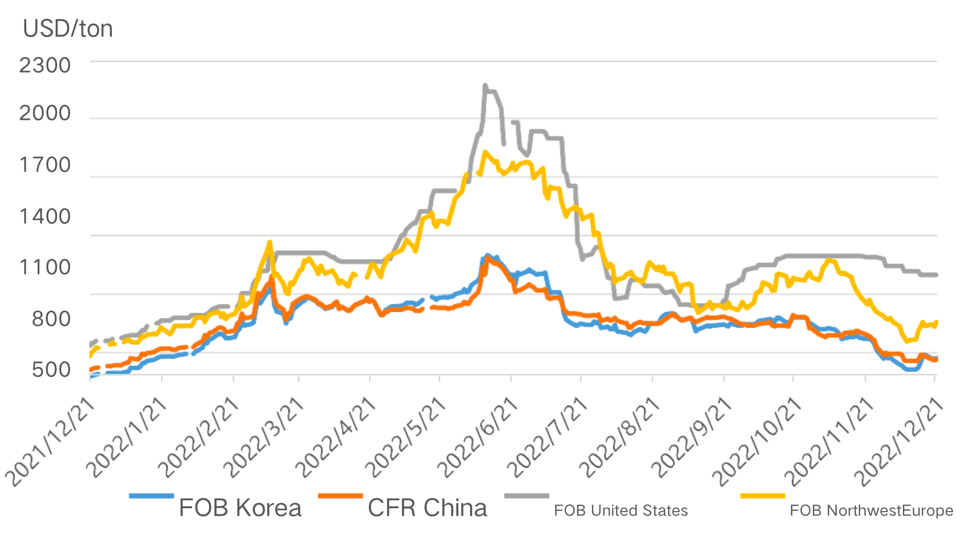 の種類 | FOB 韓国 | CFR 中国 | FOB アメリカ合衆国 | FOB ヨーロッパ |