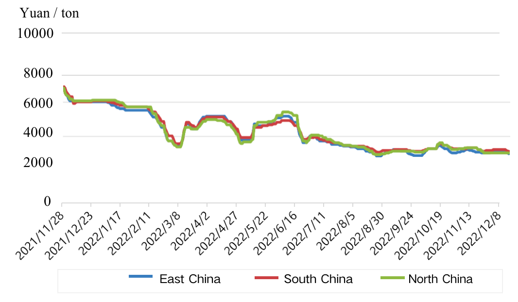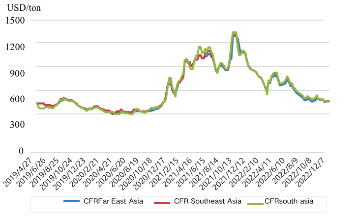 形 1. 2019年から2022年までのアジアにおける酢酸の価格チャート