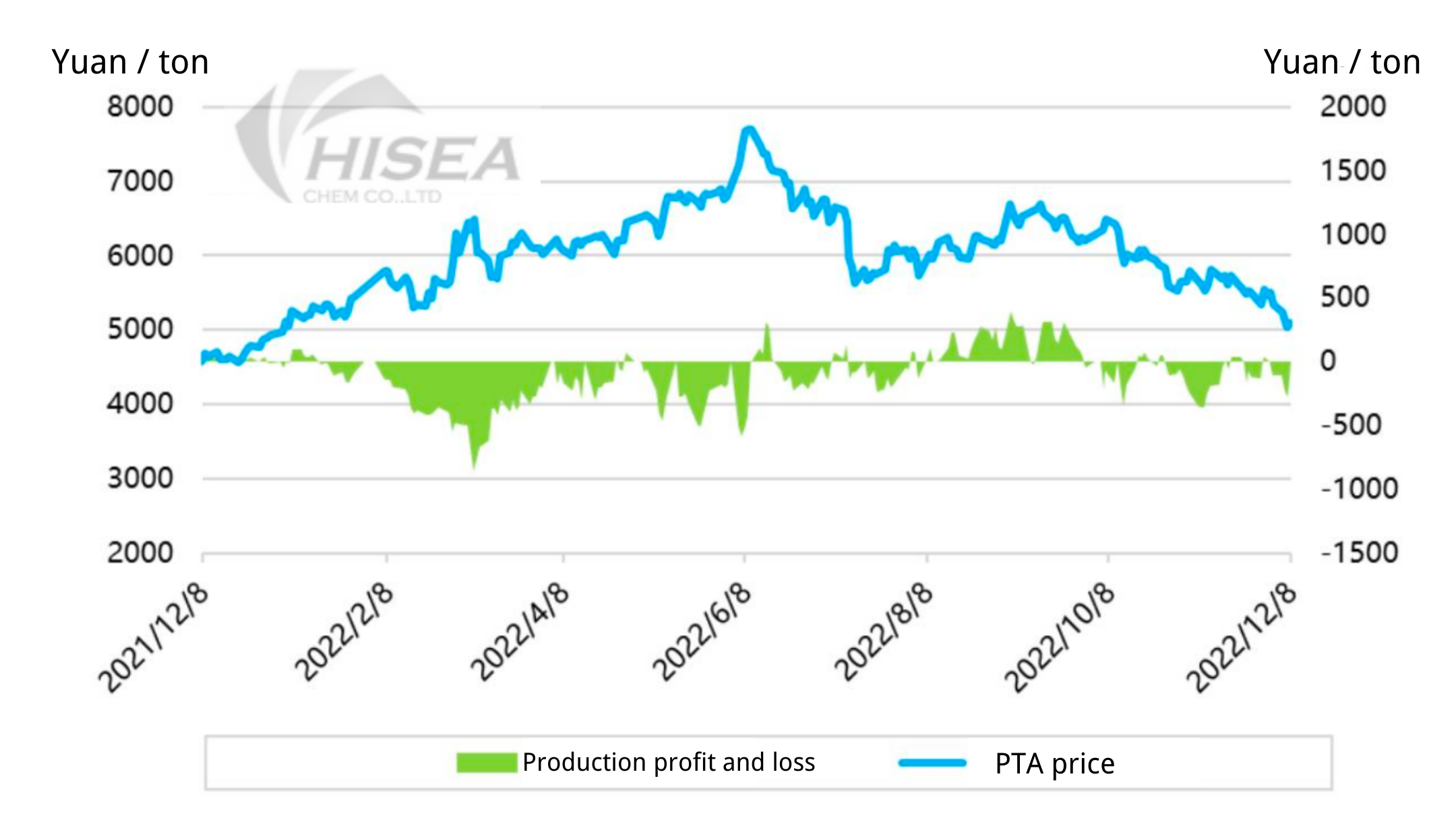 このサイクル (20221202-1208) の間、PTA 市場は大幅な下落の後、わずかに反発し、全体の市場価格は下落しました。コスト面のサポートの弱体化と需要と供給の不振により、市場の取引環境は週を通して比較的一般的でした。12 月 8 日の時点で、このサイクルの PTA 華東市場の平均スポット価格は 5,164 元/トンで、前のサイクル (2022111125-1201) から平均 310 元/トン、つまり -5.66% 下落しました。コストの観点から、この時期にロシアの石油に対する西側の価格制限と海上輸送の禁止が実施されました。OPEC+は、確立された減産計画を維持しました。、しかし、精製石油製品の在庫が急増し、国際石油価格がこの時期に急落し、今年の最低値を記録し、化学製品市場を十分に下支えしませんでした.原料PXの観点から、新しいPXデバイスShenghong 1#200万トンとWeilian Chemical 2#100万トンが徐々に大量生産され、PXの供給は増加し続け、全体的なPX市場は軽く、市場は価格が下がり続けています。12 月 7 日、台湾/中国本土のアジア PX CFR 価格は 890 米ドル/トンに下落しました。これは、PTA コストが約 4,600 元/トンに相当し、PTA 処理手数料が約 400/トンに調整されたことを示しています。原材料のサポートが弱い。PTA の自己供給の観点から見ると、短期 PTA 開始は約 66.56% に減少し、12 月 1 日より約 2% 減少しました。 (20221202-1208) 期間の PTA 単位で言えば、65 万トン単位Yangzi Petrochemical 2# は長い間操業を停止し始め、Yisheng New Materials 1# および 2# の 720 万トン単位は、以前の 8.5% と比較して、12 月 2 日に 80% に低下しました。運用に準ずる