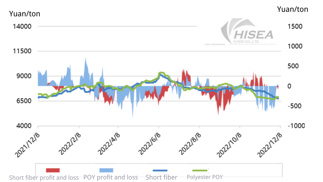 ポリエステルの稼働率は約73%。期間中 (20221202-1208)、全体的な生産と販売は許容範囲内であり、在庫圧力は緩和され、一部の製品の利益線は回復しました。PTA先物現物ベース